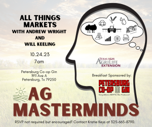 Do you have questions about markets or marketing your crops? Come out to Petersburg Co-Op Gin to, eat breakfast with us, learn from our marketing experts, and get your burning questions answered! See the flyer for more details.