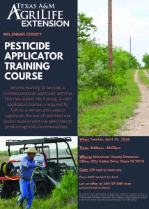 Wanting to become a licensed pesticide applicator with the TDA? Attend this training!