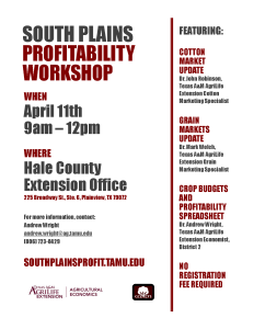 Don’t miss out on the South Plains Profitability Workshop featuring: