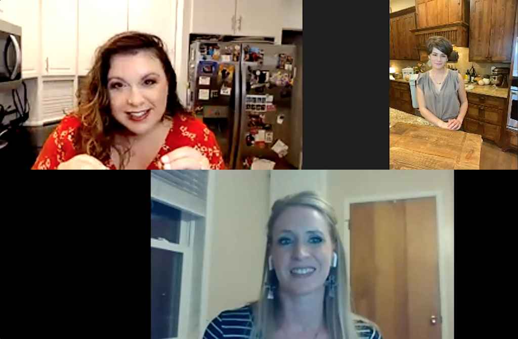 Texas CommonGround volunteers Kalley Howard (upper right) and Amy Halfmann (lower center) discuss food and farming in the Thanksgiving Edition of Mom Meals
